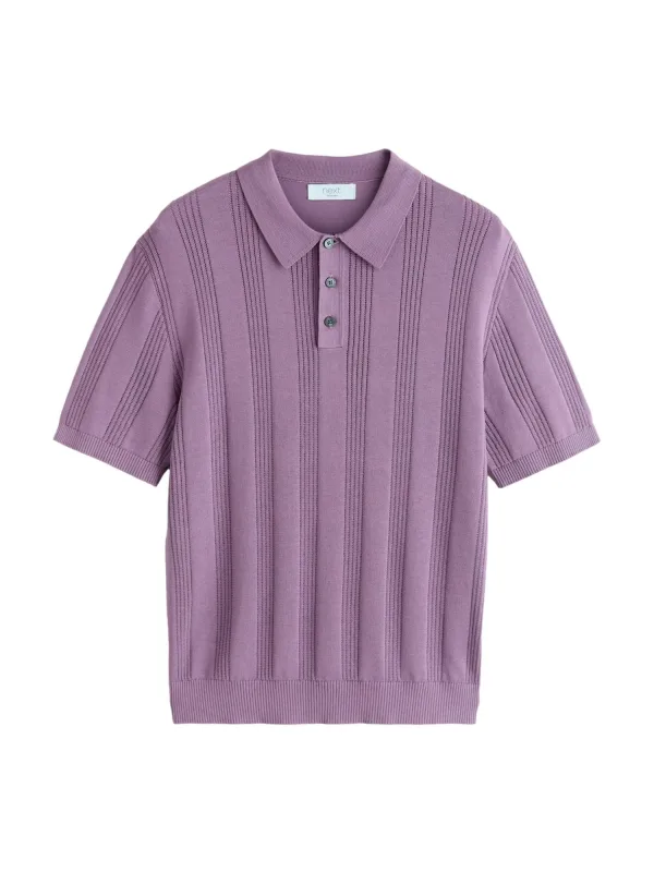 Next Normale Pasvorm - Pointelle Gebreid Poloshirt Met Hoog Katoengehalte