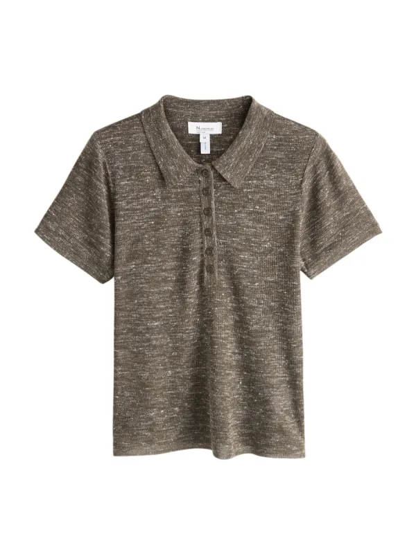 Design: Geribbelde kraag; Type sluiting: Knoopsluiting; Materiaal: Knitwear; Halstype: Polokraag; Motief: Mélange; Extra's: Met textuur; Pasvorm: Normale pasvorm; Armlengte: Kwartmouw; Lengte: Normale lengte
