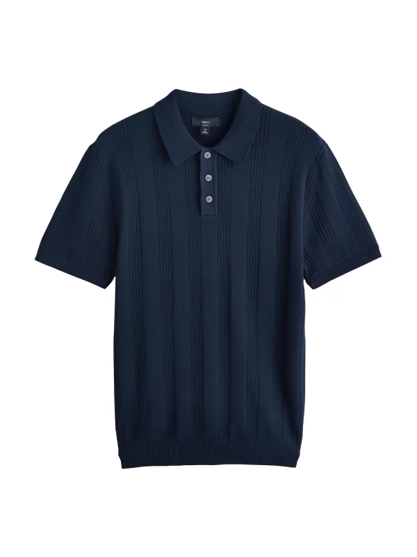 Next Slim Fit - Pointelle Gebreid Poloshirt Met Hoog Katoengehalte