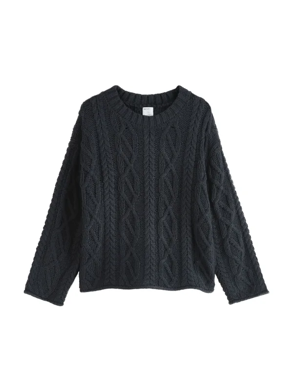 Design: Geribbelde kraag; Materiaal: Knitwear; Halstype: Ronde hals; Motief: Effen; Details: Vlecht brei; Extra's: Fully fashioned; Pasvorm: Losse pasvorm; Armlengte: Lange mouw; Lengte: Normale lengte