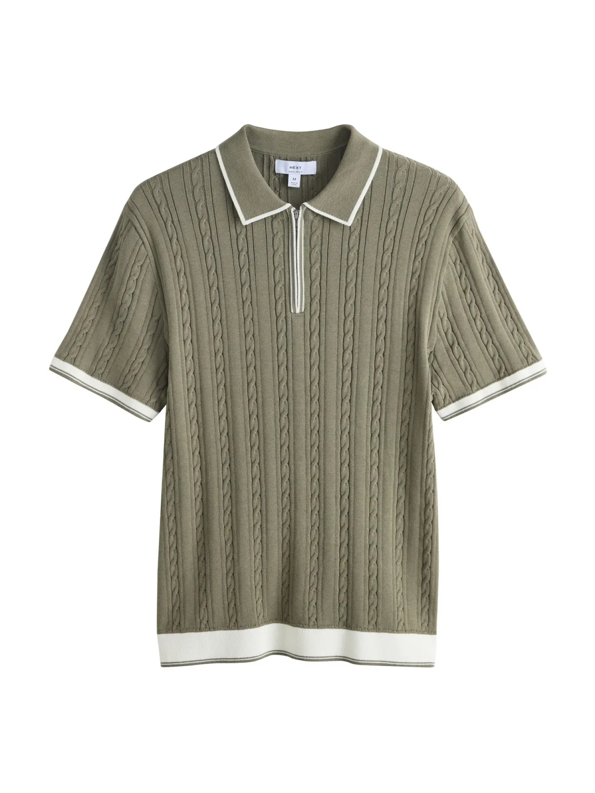 Next Kabelgebreid slim-fit poloshirt met korte rits en contrastbies