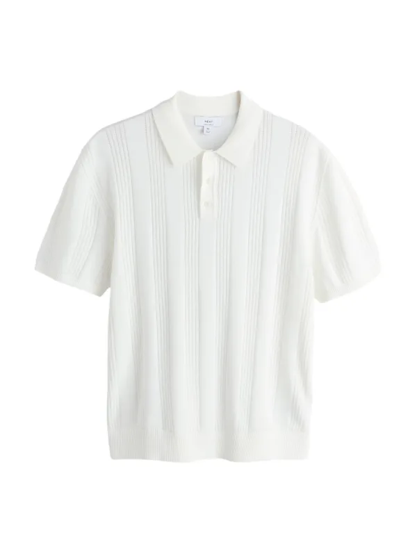 Next Normale Pasvorm - Pointelle Gebreid Poloshirt Met Hoog Katoengehalte