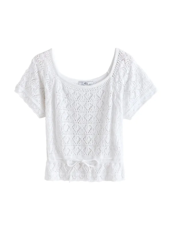 Design: Raglanmouwen, Overige kragen; Materiaal: Knitwear; Halstype: Ronde hals; Motief: Effen; Details: Mesh; Extra's: Verstelbare taille, Fully fashioned; Pasvorm: Normale pasvorm; Armlengte: Kwartmouw; Lengte: Normale lengte