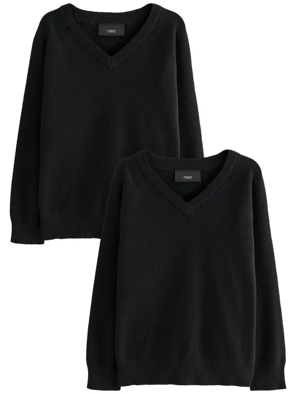 Design: Geribbelde kraag, Rechte zoom, Geribd ceintuurtje; Materiaal: Knitwear; Halstype: V-hals; Motief: Effen; Extra's: Voelt zacht aan; Pasvorm: Normale pasvorm; Aantal: 2 Pack; Armlengte: Lange mouw