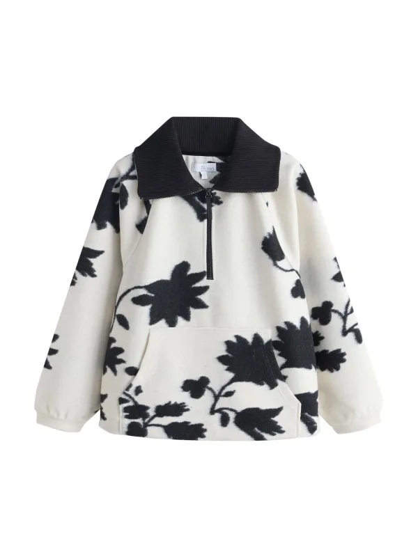 Design: Geribd ceintuurtje, Kangaroo zak; Type sluiting: Ritssluiting; Materiaal: Gerecycled materiaal; Halstype: Schipperskraag; Motief: Bloemenprint; Extra's: All-over patroon; Pasvorm: Losse pasvorm; Armlengte: Lange mouw; Lengte: Normale lengte