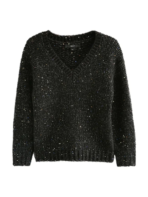 Design: Geribbelde kraag, Geribd ceintuurtje, Overcut schouder; Type sluiting: Slip; Materiaal: Knitwear; Halstype: V-hals; Motief: Mélange; Details: Pailletten; Extra's: Effect garen, Glinsterend, Fully fashioned; Pasvorm: Normale pasvorm; Armlengte: Lange mouw; Lengte: Normale lengte
