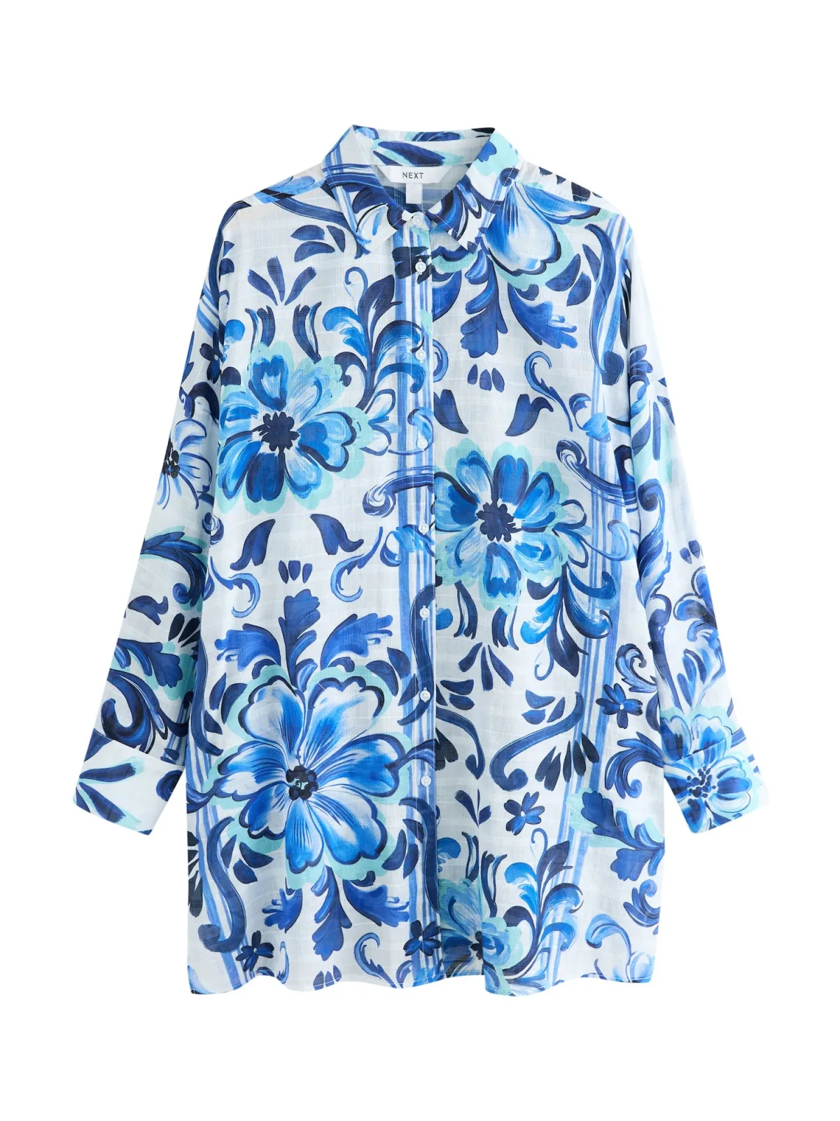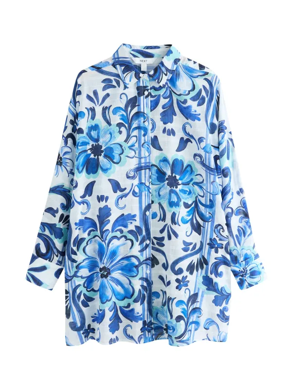 Design: Gevoerde zoom/rand; Type sluiting: Knoopsluiting; Materiaal: Katoen; Motief: Bloemenprint; Kraag: Kentkraag; Extra's: All-over patroon; Pasvorm: Wijde pasvorm; Armlengte: Lange mouw; Lengte: Normale lengte