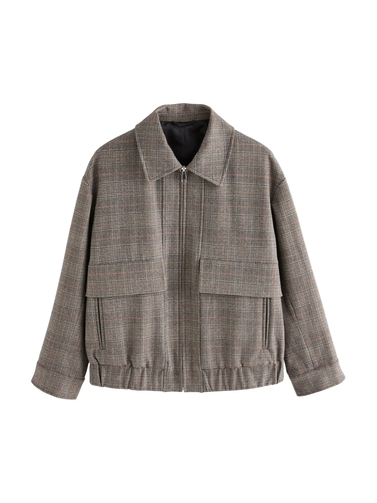 Design: Turn-down kraag; Type sluiting: Ritssluiting; Type jas: Bomberjack; Voering: Licht gevoerd; Materiaal: Gerecycled materiaal; Motief: Geruit; Extra's: All-over patroon; Pasvorm: Normale pasvorm