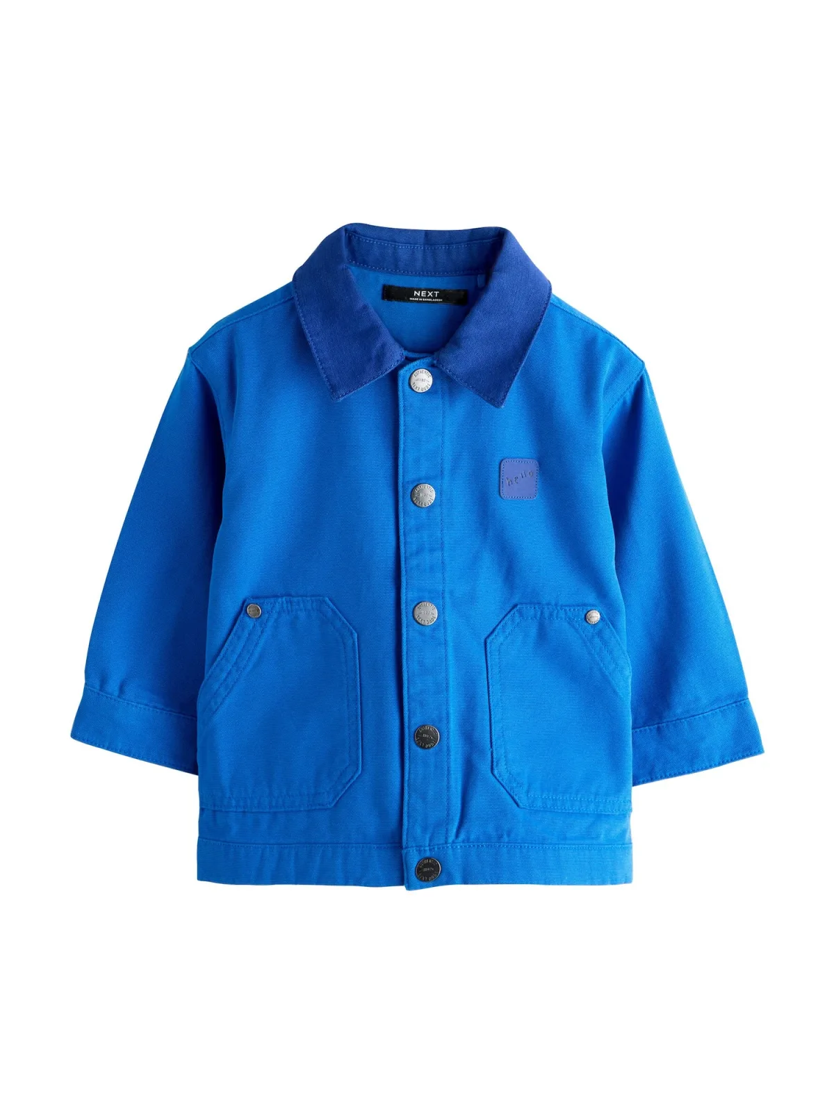 Design: Gevoerde zoom/rand, Turn-down kraag, Opgezette zakken; Type sluiting: Drukknoop; Voering: Niet gevoerd; Materiaal: Katoen; Motief: Effen; Extra's: Canvas, Op staal naden; Pasvorm: Normale pasvorm