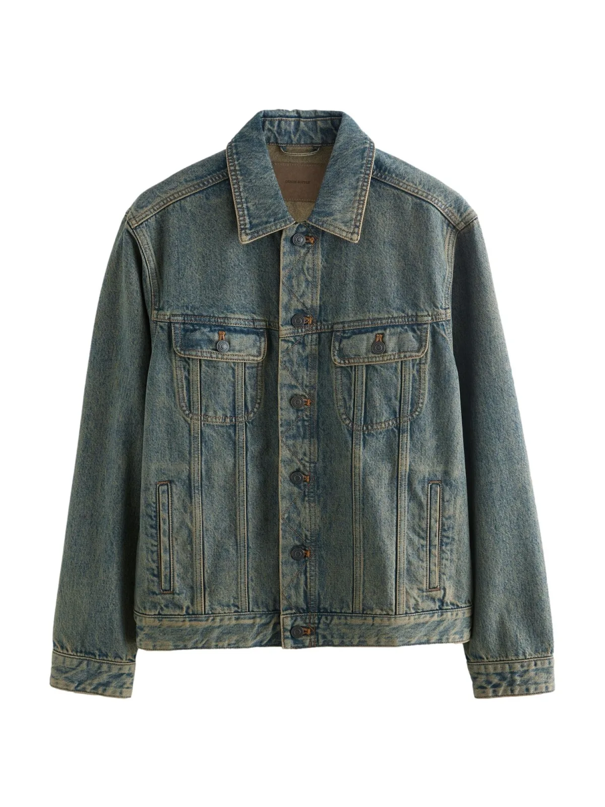 Design: Knop placket, Borstzak, Zakken aan de zijkant, Knop sluiting; Type sluiting: Knoopsluiting; Voering: Niet gevoerd; Materiaal: Denim; Motief: Effen; Extra's: Contrasterende naden; Pasvorm: Normale pasvorm