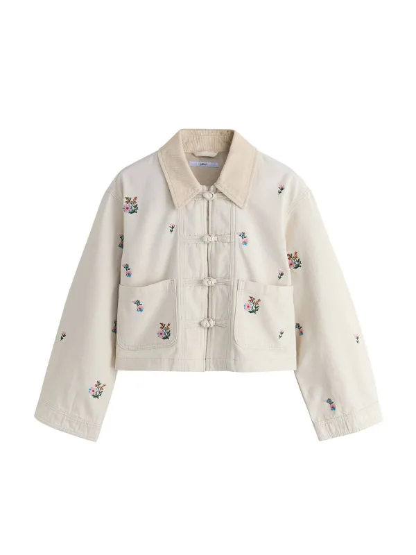 Next Katoenen corduroy jasje met bloemenborduursel en kraag