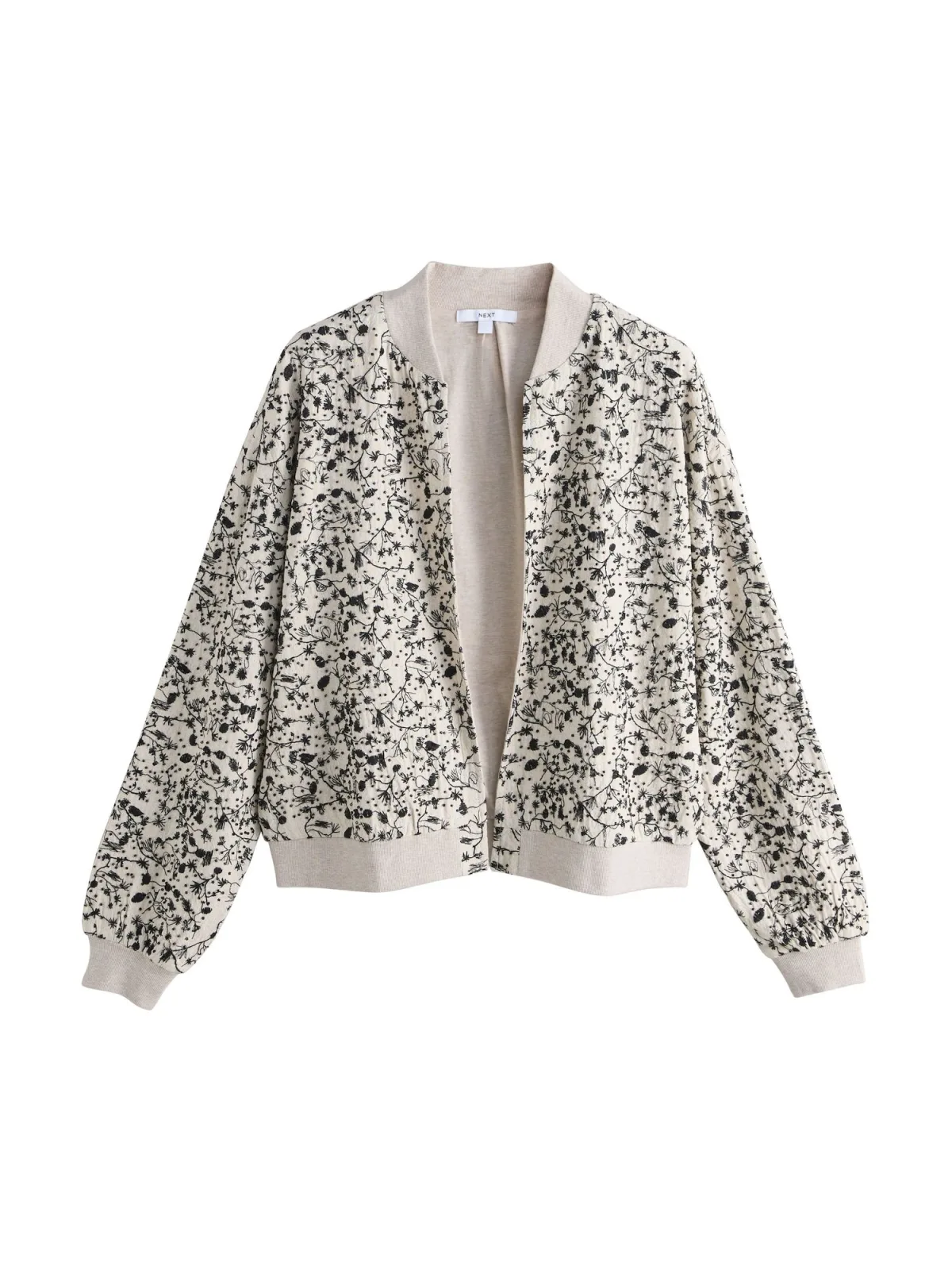 Design: Geribbelde kraag; Type jas: Bomberjack; Voering: Licht gevoerd; Materiaal: Viscose; Motief: Bloemenprint; Extra's: All-over patroon; Pasvorm: Normale pasvorm