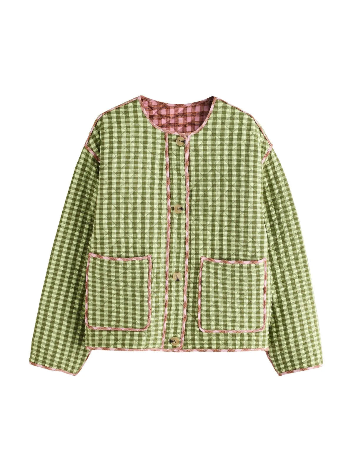 Design: Overcut schouder, Knop sluiting; Type sluiting: Knoopsluiting; Type jas: Gewatteerde jas; Voering: Licht gevoerd; Materiaal: Gerecycled materiaal; Motief: Geruit; Extra's: All-over patroon, Draaifunctie; Pasvorm: Normale pasvorm