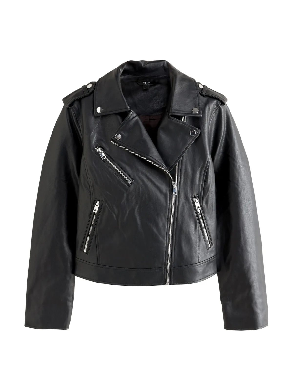 Design: Revers kraag; Type sluiting: Ritssluiting; Type jas: Bikerjack; Voering: Licht gevoerd; Materiaal: Imitatieleder; Motief: Effen; Extra's: Gladde stof; Pasvorm: Normale pasvorm