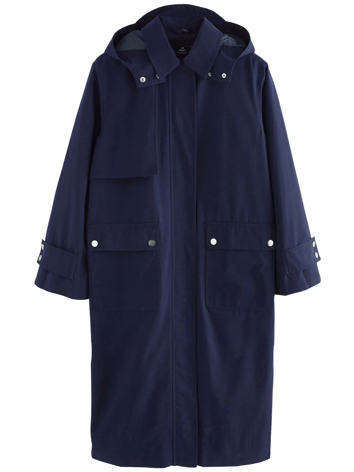 Type mantel: Regenjas; Design: Turn-down kraag, Verborgen rits, Opgezette zakken; Type sluiting: Ritssluiting; Voering: Licht gevoerd; Materiaal: Katoen; Motief: Effen; Extra's: Op staal naden, Voelt zacht aan, Waterafstotend; Pasvorm: Losse pasvorm; Lengte: Lange pasvorm