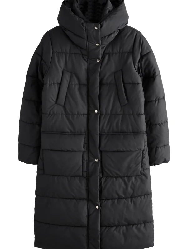 Next creme Regenbestendige gewatteerde lange jas met capuchon