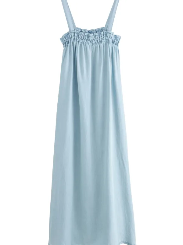 Design: Gevoerde zoom/rand; Materiaal: Lyocell; Halstype: Carréhals; Motief: Effen; Soort bandjes: Normale bandjes; Details: Gedrapeerd; Extra's: Op staal naden; Lengte: 7/8 lengte; Snit: Recht; Pasvorm: Losse pasvorm; Armlengte: Mouwloos