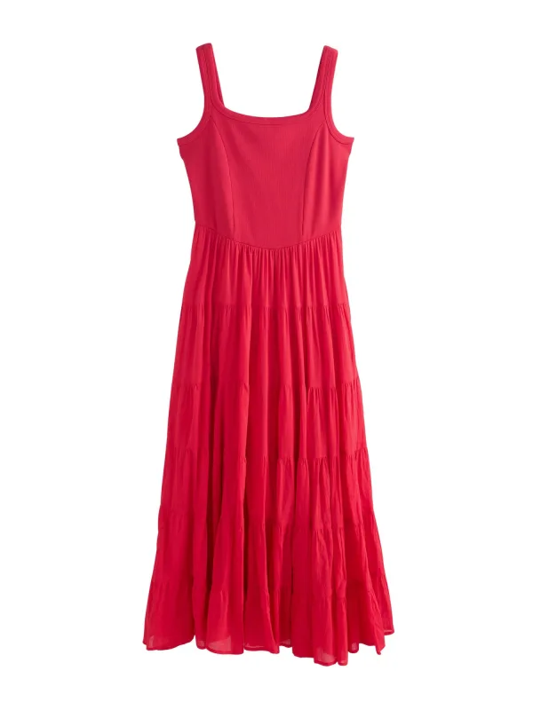 Next Midizomerjurk zonder mouwen met vierkante hals en gelaagde rok