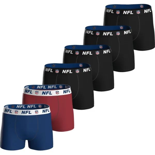 NFL Shield Heren Boxershorts in een praktische 6-pack. Effen shorts van aangename katoenmix met elastische NFL Shield-logoband.