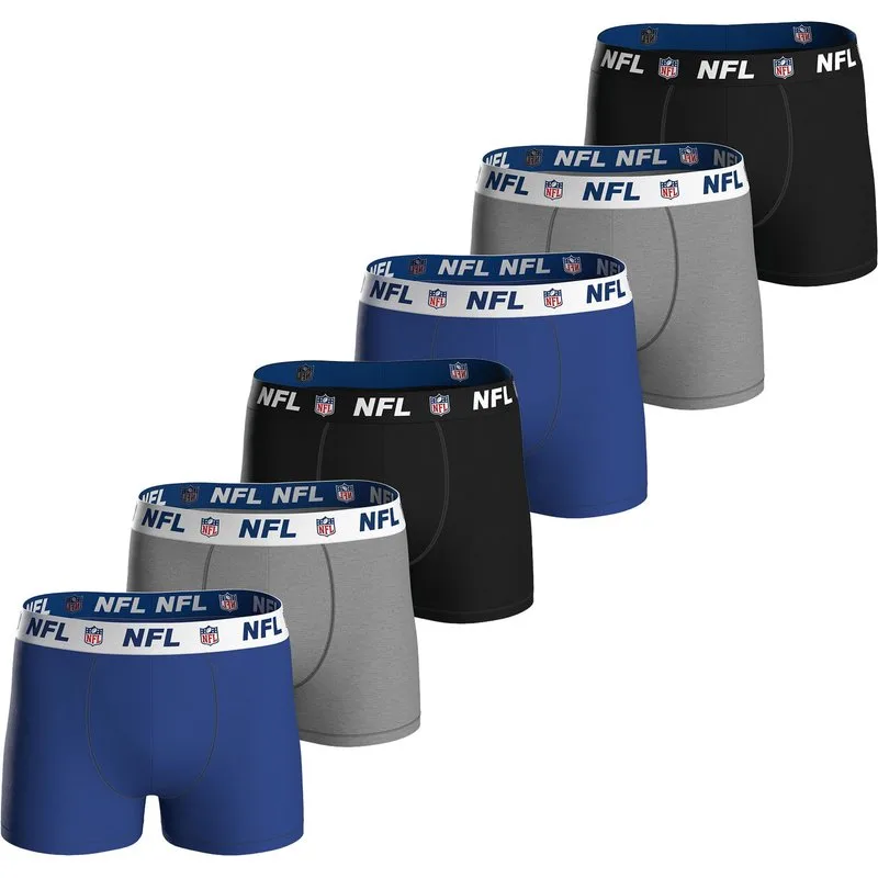 NFL Shield Heren Boxershorts in een praktische 6-pack. Effen shorts van aangename katoenmix met elastische NFL Shield-logoband.