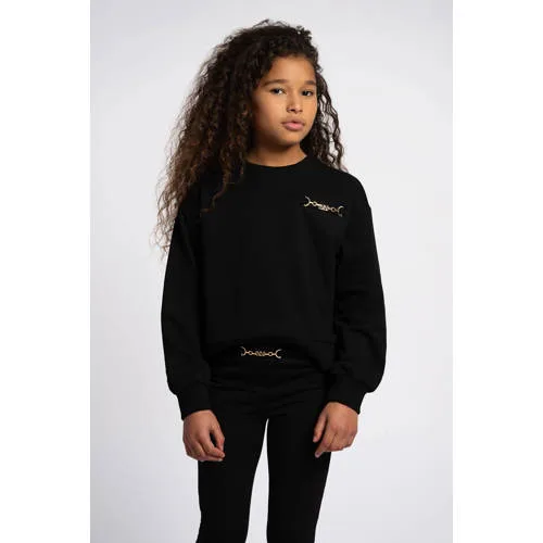 Deze NIK&NIK broek heeft een hoge taille en flared pijpen. De elastische tailleband zorgt voor een fijne pasvorm, de ketting aan de voorkant geeft net wat extra’s. Gemaakt van stretchkatoen.