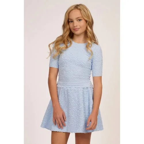 Fris, licht en makkelijk te combineren, dit lichtblauwe meisjes T-shirt met korte mouwen is een praktische basic voor elke dag. De effen kleur geeft een rustige uitstraling, terwijl de rechte mouwen en ronde hals zorgen voor een tijdloze look. De soepele stof met stretch beweegt prettig mee, of je dochter nu naar school gaat of met vriendinnen afspreekt.Belangrijke details op een rij Korte, rechte mouwen en ronde hals voor een rustige, moderne look Effen lichtblauwe kleur, makkelijk te combineren met verschillende broeken en rokken Totale lengte: 38 cm, geschikt voor schoolkind en tiener Gemaakt van een zachte, rekbare stof die comfortabel aanvoelt Maakt deel uit van een co-ord set, voor een compleet en afgestemd outfit Model is 145 cm en draagt maat 140, handig als referentie bij het kiezen van de maat Wasbaar op 30 graden, praktisch in het dagelijkse wasritme Verpakking met 1 T-shirt, als gerichte aanvulling in de kledingkastGeschikt voor schooldagen en vrije tijdDit T-shirt past goed bij een jeans, korte broek of een rok en is daarmee een fijne basis voor allerlei outfits. Door de comfortabele pasvorm is het geschikt voor lange schooldagen, maar ook voor ontspannen momenten thuis of buiten spelen.NIK&NIK voor moderne kidsNIK&NIK staat bekend om kinderkleding met een moderne uitstraling en een modieuze twist. De collecties sluiten aan op actuele trends, maar blijven tegelijk draagbaar en praktisch. Zo combineert NIK&NIK een stoere, eigentijdse stijl met aandacht voor comfortabele materialen en fijne pasvormen.Een licht en soepel T-shirt dat moeiteloos meegroeit met drukke dagen en wisselende plannen.