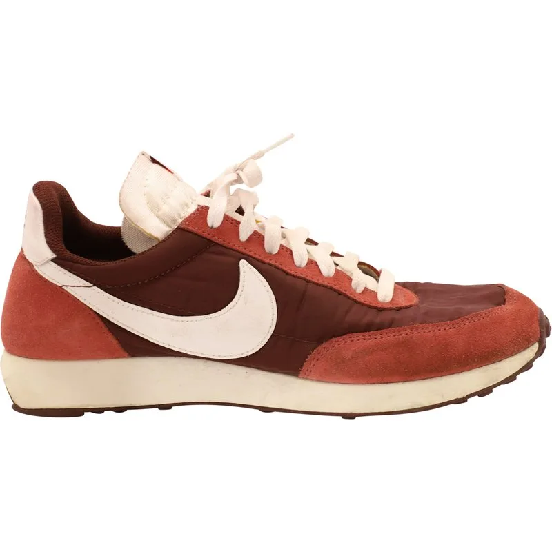 VINTAGE, RRP ALS NIEUW Als de eerste sneaker met Nike’s inmiddels beroemde Air-technologie, begon de Air Tailwind 79 een erfgoed dat tot op de dag van vandaag voortduurt. Een recordbreker, ondanks de minimalistische esthetiek, deze witte en zwarte uitvoering combineert lichte bovenwerk met responsieve demping en een iconische wafelgrond, precies zoals bedoeld in '78. Nike Air Tailwind 79 Sneakers in Bourgondisch Nylon Staat: zeer goed Materiaal: Nylon Maat: US9.5 Gebruikssporen: met enkele vlekken, kreukels SKU: 209313