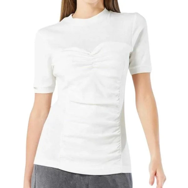 60% Katoen, 20% Polyester, 20% Viskose. Ontwerp: Logo, Ruched. Hals: Crew Neck. Mouwtype: Korte mouwen. XS: 32,5 in. S: 35,5 in.