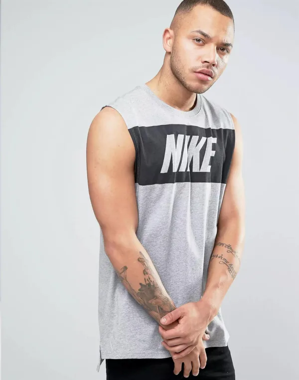 Nike zwart mouwloos T-shirt met retro-logo. Mouwloos vestshirt van Nike. Ademend katoen. Ronde nek. Atletische snit.