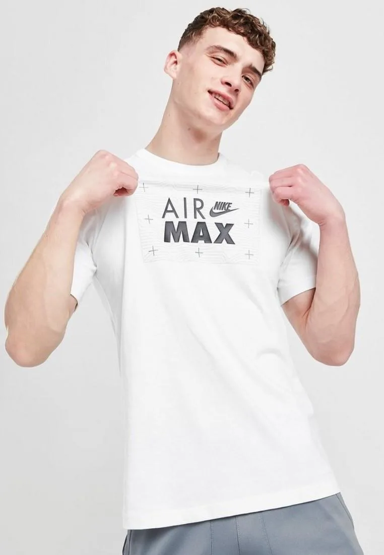 Nike Air Max T-shirt met korte mouwen van Nike. Gemaakt van licht en duurzaam katoen, dat de hele dag door draagcomfort garandeert. Het heeft een ronde halslijn en korte mouwen die de klassieke snit van het geheel benadrukken. Het T-shirt Nike Air Max-branding op de borst.