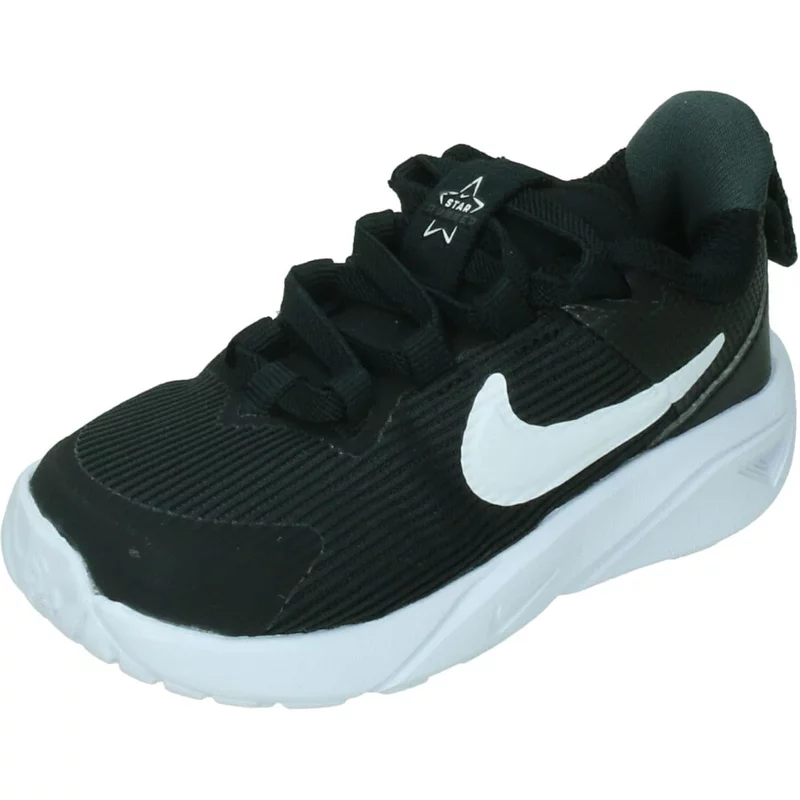 De Nike Star Runner 4 is een schoenen voor baby’s/peuters. Ga snel de deur uit met de Star Runner. Lusjes op de tong en hak maken het gemakkelijk om de schoen te openen zodat kleintjes in de schoen kunnen stappen en op pad kunnen gaan. Zachte demping in de middenzool zorgt voor comfortabele veerkracht zodat ze altijd nog een extra rondje kunnen rennen. De zool biedt grip op straat, gras en gravel. De met rubber omwikkelde neus zorgt ervoor dat de schoen steviger is zodat ze langer meegaan. Lusjes op de tong en hak maken het gemakkelijk om schoenen wijd te openen Net zo sterk als een slang: synthetisch materiaal bedekt de voorkant van de schoen voor langdurige stevigheid Verticale mesh in het bovenwerk houdt de voeten van je kids lekker koel Elastische veters