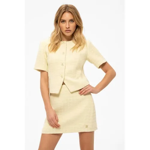 Vrolijk je zomergarderobe op met dit lichtgele gebreid vest voor dames van NIKKIE. Model Perth uit de Rebel collectie is een kort vest met korte mouwen en een rechte pasvorm. De effen kleur en ronde hals geven een rustige, moderne uitstraling, terwijl de knoopsluiting aan de voorkant zorgt voor een nette afwerking. De zachte wolmix voelt prettig aan op de huid, ideaal voor frisse ochtenden of koele avonden in de zomer.Kenmerken van vest Perth Lichtgeel damesvest uit de Rebel collectie van NIKKIE Korte lengte, goed te dragen boven een high waist jeans, rok of short Korte, rechte mouwen voor een luchtig en zomers gevoel Ronde hals en knoopsluiting aan de voorkant Gemaakt van 30% acryl en 20% wol voor een zachte, comfortabele touch Effen ontwerp dat makkelijk combineert met andere items Rechtvallende pasvorm voor een relaxed silhouetStijlvol laagje voor zomerse dagenDit korte vest is geschikt als extra laagje over een top of jurkje. De lichte kleur past goed bij zomerse tinten en zorgt voor een frisse uitstraling. Neem het mee in je tas en trek het snel aan wanneer de temperatuur daalt.NIKKIE: herkenbare stijl met een stoere randNIKKIE staat voor collecties met een duidelijke signatuur. De ontwerpen combineren vrouwelijke vormen met een stoerdere touch, waardoor je een verzorgde maar toch ontspannen look creëert. Met dit vest voeg je een eigentijds kledingstuk toe dat in veel outfits terugkomt.Een licht en comfortabel vest dat je zomerse outfits moeiteloos compleet maakt.