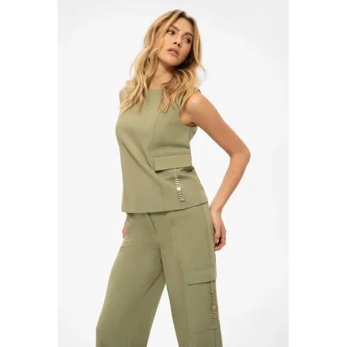 De NIKKIE Parlo ds top knitted is een mouwloze top met een vrouwelijke, eigentijdse uitstraling. De top is gemaakt van een soepele, elastische stof die mooi aansluit op het lichaam zonder strak aan te voelen. De ronde hals en het effen ontwerp zorgen voor een rustige basis, terwijl de sierzakken aan de voorkant een subtiel detail toevoegen. Als onderdeel van de Rebel collectie sluit deze top aan bij een zelfverzekerde, moderne stijl, prettig voor het voorjaar.Details die opvallen Mouwloze top, geschikt om in lagen te dragen of zo op warmere dagen Ronde hals met een eenvoudige vorm die makkelijk te combineren is Effen design dat goed samengaat met verschillende onderstukken Sierzakken aan de voorkant als verwijzing naar tailoring Elastische stof met comfortabele stretch door de toevoeging van elastaan Onderdeel van de Rebel collectie, met een stoere en vrouwelijke uitstralingStyling voor elke dagDeze Parlo top combineer je eenvoudig met een high waist jeans of een nette pantalon. Onder een blazer ontstaat snel een geklede look, terwijl een leren jasje juist een wat meer uitgesproken combinatie geeft. Het mouwloze model draagt prettig op warmere lentedagen.NIKKIE als stijlstatementNIKKIE staat voor collecties met een herkenbare, vrouwelijke signatuur. Het merk combineert strakke lijnen met ontwerpen die goed te dragen zijn in het dagelijks leven en makkelijk te stylen zijn. Met deze top voeg je een item toe dat past binnen die kenmerkende NIKKIE stijl.Een veelzijdige top die al snel een veelgedragen item in je garderobe kan worden.