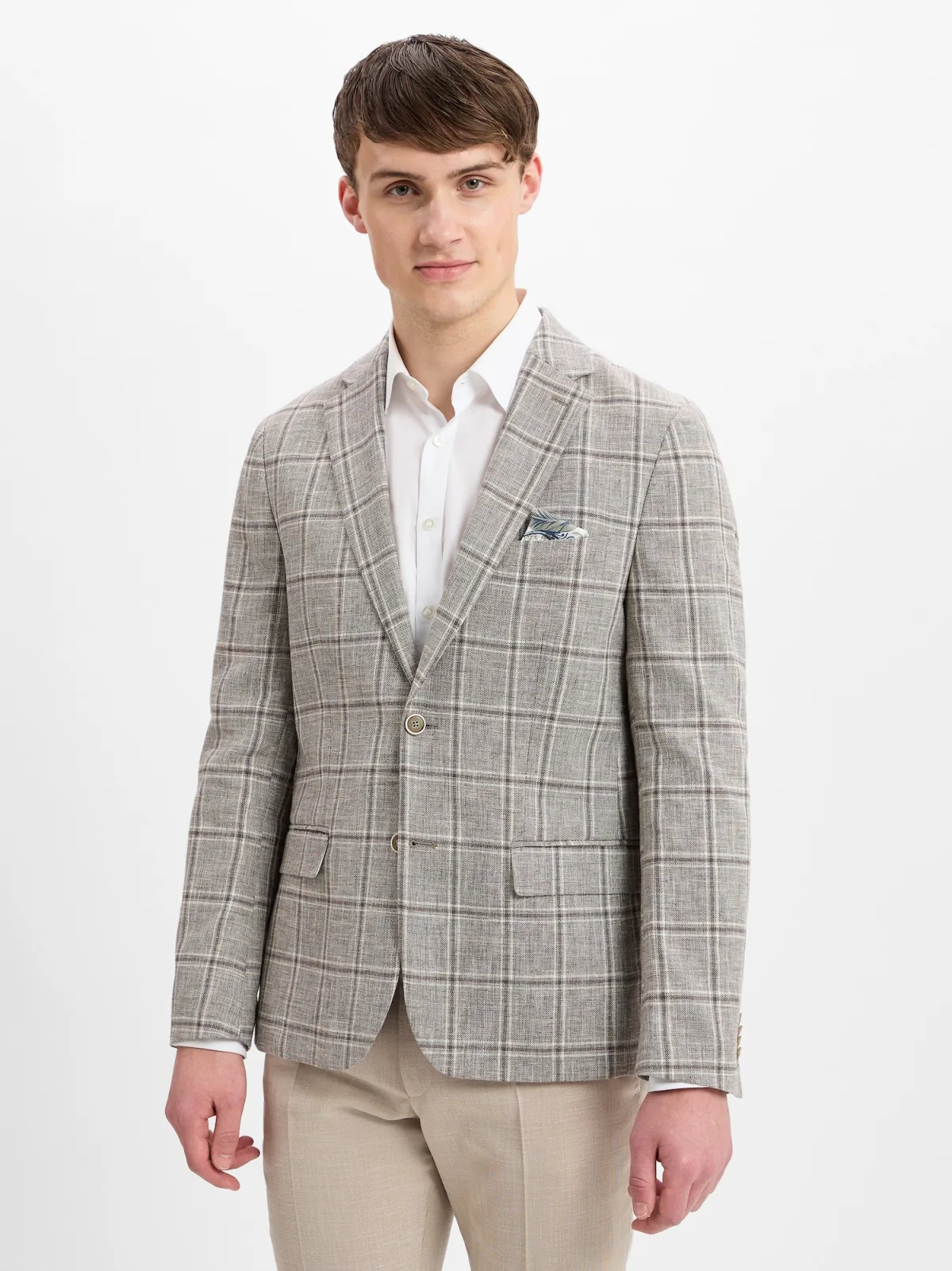 Design: Revers kraag, Borstzak; Type sluiting: Knoopsluiting; Voering: Licht gevoerd; Materiaal: Linnen; Motief: Geruit; Extra's: All-over patroon; Pasvorm: Regular fit