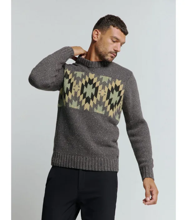 No Excess Pullover Crewneck Jacquard Pattern With Silk Dark Grey