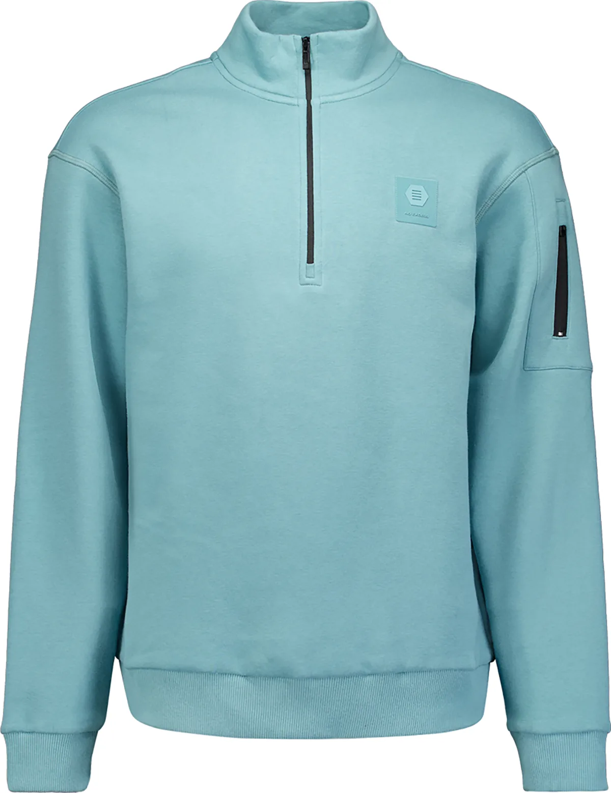 Deze blauwe sweater is gemaakt van stevige sweatstof en heeft een sportieve halve rits bij de kraag. Het zakje op de mouw en het cleane design geven het item een functionele én moderne uitstraling. Combineer met een jeans of cargobroek voor een casual look met een utility-touch.