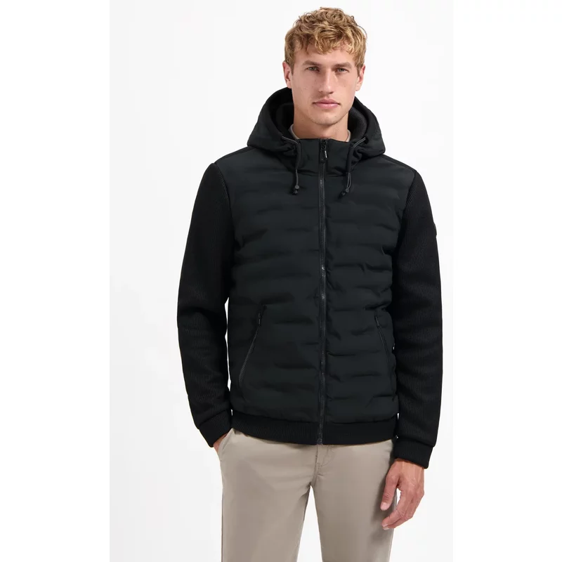 Deze zwarte all season jas van No Excess combineert een gewatteerd voorpand met gebreide mouwen en rug voor ultiem comfort. Dankzij de capuchon en ribboorden blijf je warm tijdens frisse dagen. Perfect over een basic tee of hoodie voor een casual laagjeslook. Deze jas is gemaakt van 100% polyester.