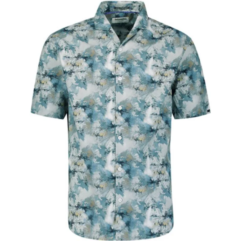Overhemd met korte mouwen en een expressieve blauwe print voor een frisse zomerlook. Gemaakt van lichtgewicht stof voor comfortabel dragen op warme dagen. Dit overhemd is gemaakt van 55% viscose en 45% viscose.