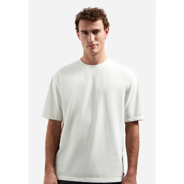 T-shirt met korte mouwen, geribde hals en textuur, gemaakt van een katoenmix. Zacht, ademend en licht rekbaar voor comfort de hele dag door, perfect voor casual kleding. Dit shirt is gemaakt van 50% katoen, 47% polyester en 3% elastaan.