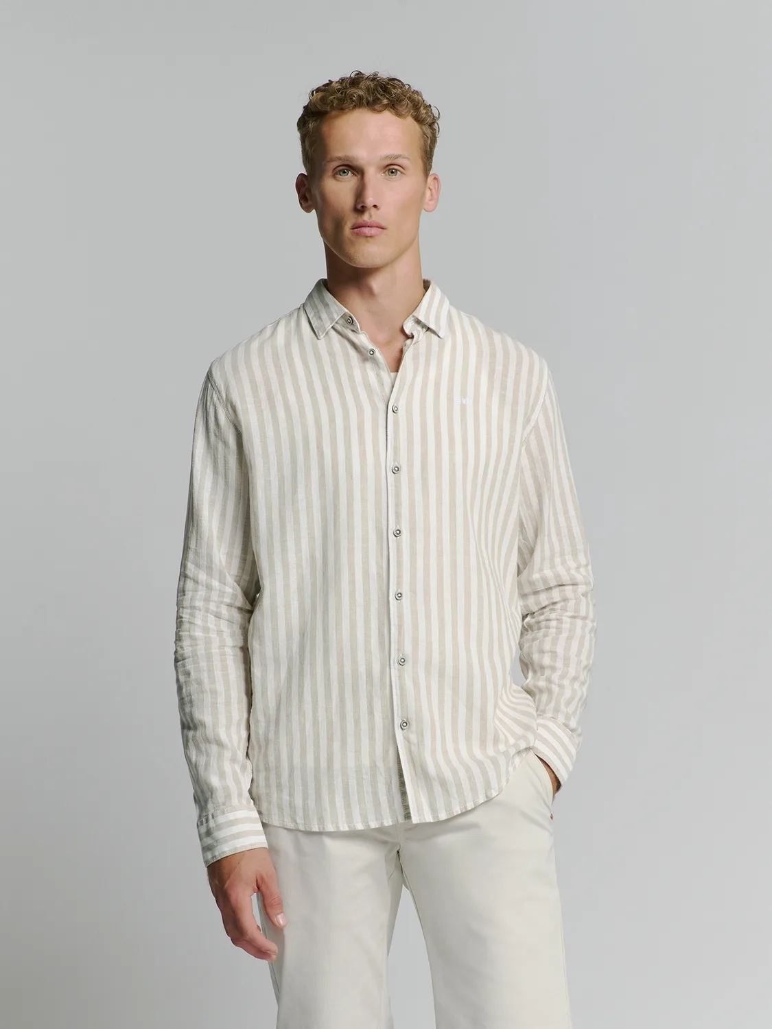 No- Excess Male Overhemden Shirt Verical Big Stripes With Linen Prijzen