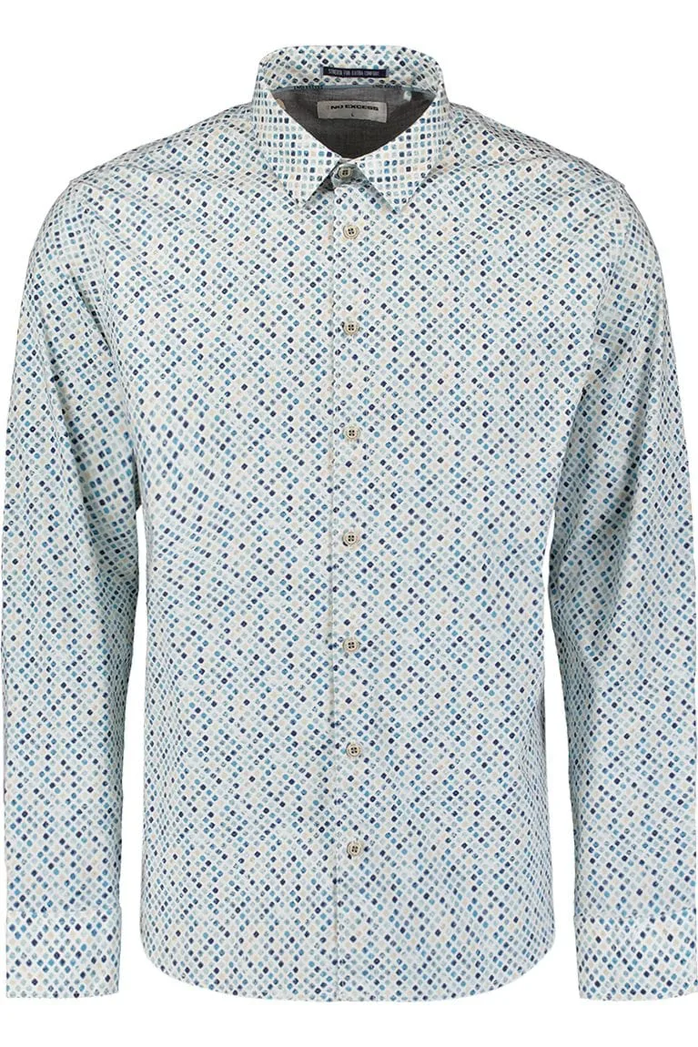 Shirt Stretch Allover Printed Seablue is een langemouw overhemd van het merk No Excess.