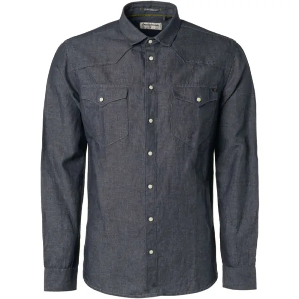 No Excess Overhemd lange mouw linnen denim look indigo Prijzen
