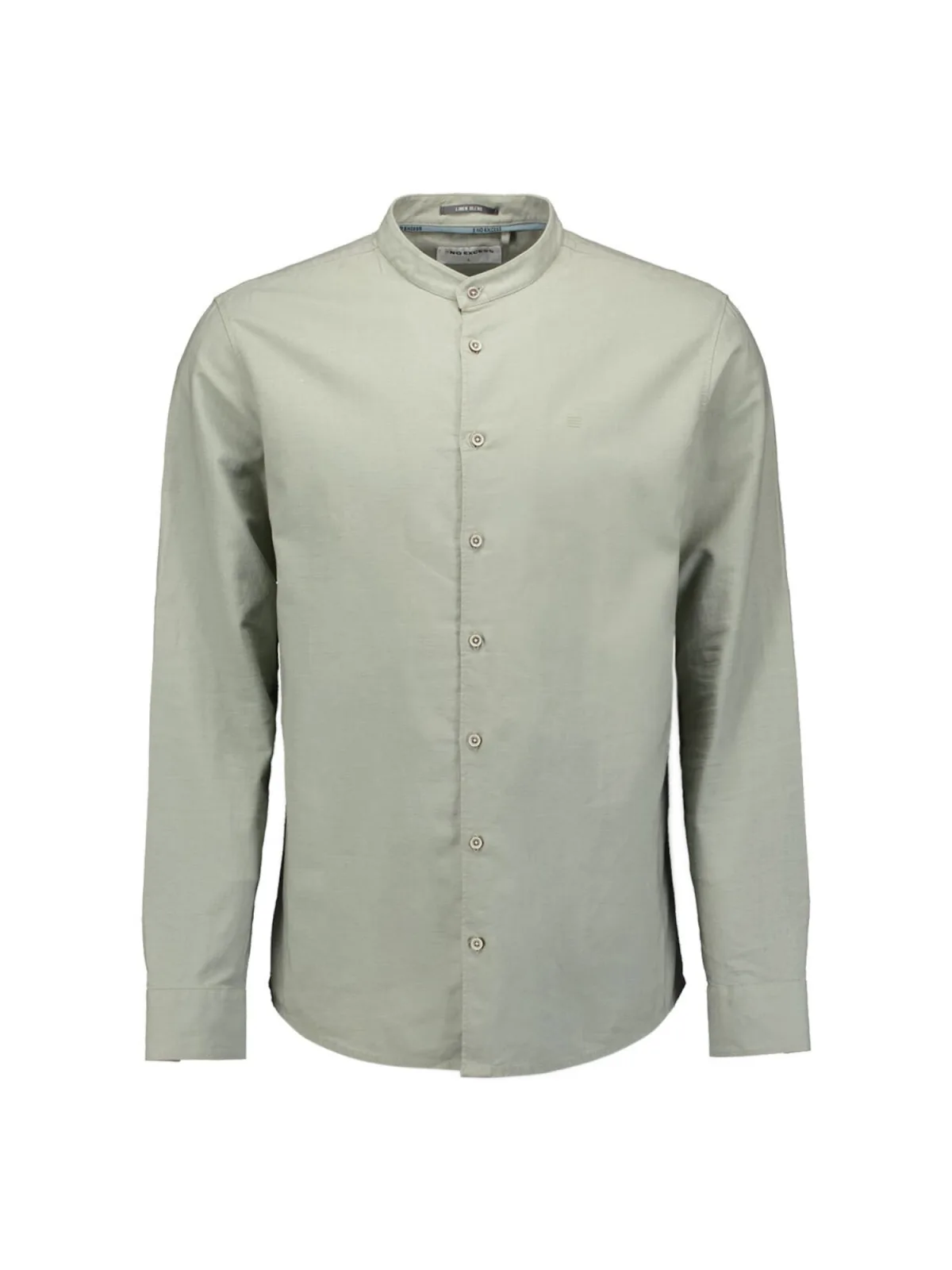Shirt Granddad Solid With Linen Light Army is een langemouw overhemd van het merk No Excess.