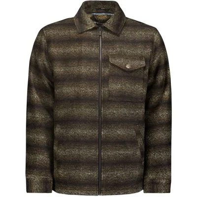 No Excess Overshirt Zipper Closure Stripe Jacquard Khaki
