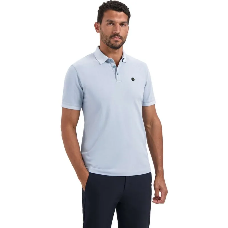 No Excess Polo pique garment dyed dusty blue