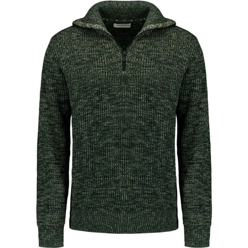 Pullover Half Zipper High Neck 3 Co Dark Green is een trui van het merk No Excess.