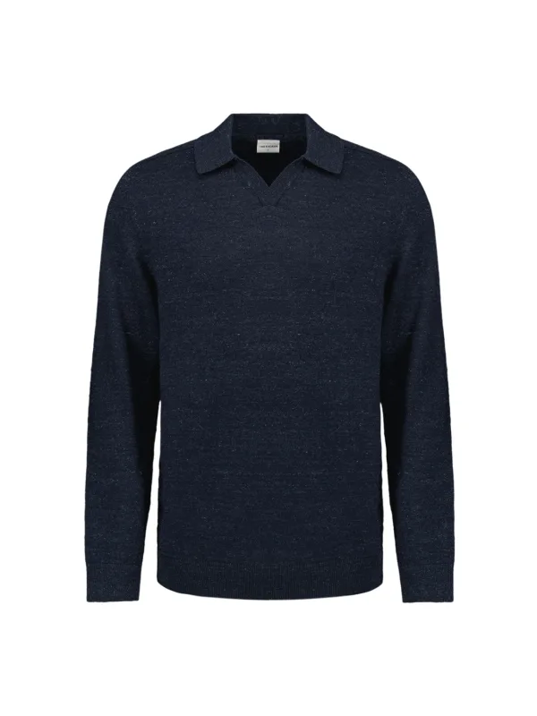 Pullover Polo With Linen Deep Blue is een trui van het merk No Excess.