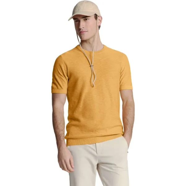 No Excess Pullover Short Sleeve Crewneck Solid Slub Knit Yellow