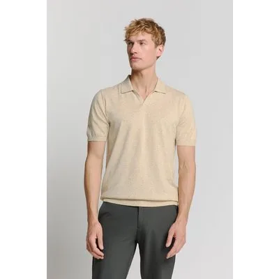 No Excess Pullover Short Sleeve Polo V Melange With Linen Sand
