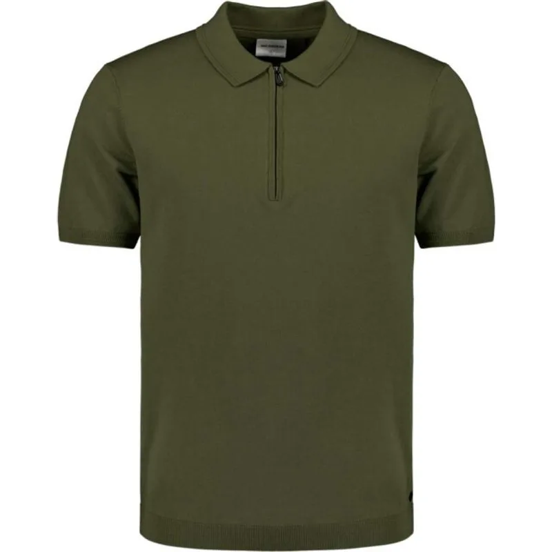 Pullover Short Sleeve Polo Zip Soli Dark Moss is een poloshirt van het merk No Excess.